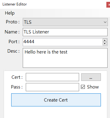 This protocol provides a secure and robust communication channel for C2 traffic. Before using this listener, you must generate an SSL certificate file.