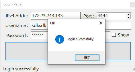 After logging in successfully, you should see the following message box: