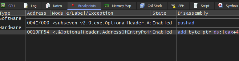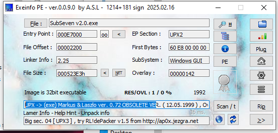 Unpacking UPX and ASPack using x32dbg or OllyDbg is almost the same. In this article, I use Sub7 version 2.0 and version 2.3 payloads as examples