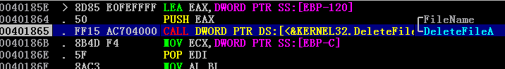 At first glance, this may appear to be a simple evasion technique. However, further analysis shows that this mechanism actually implements a self-destruction routine!