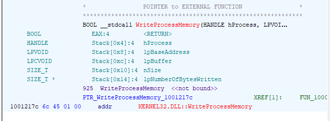 It then writes the base addresses of several APIs into the remote process: