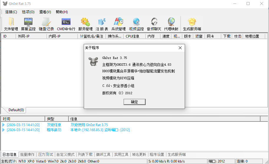 Gh0st Beta 3.6 is one of the most well-known open-source versions of Gh0st, and many later variants were developed based on it. However, this article uses Gh0st Beta 2.5 for demonstration because it proved to be more stable during experimentation.