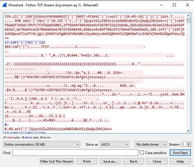 njRAT v0.7 transmits data in plain text without any protection. Only certain data is encoded using base64.