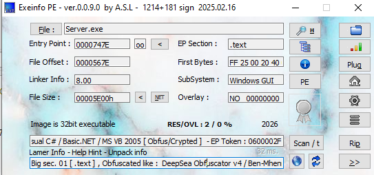 ExeInfo PE showed that the payload might be obfuscated, but DIE showed that it does not.