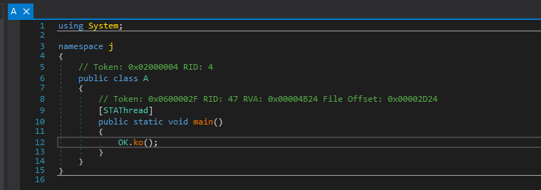 Open the payload executable using dnSpy. We can find the entry point of it: