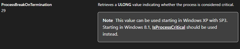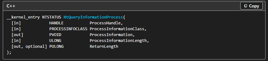 3. https://learn.microsoft.com/en-us/windows/win32/api/winternl/nf-winternl-ntqueryinformationprocess ↩