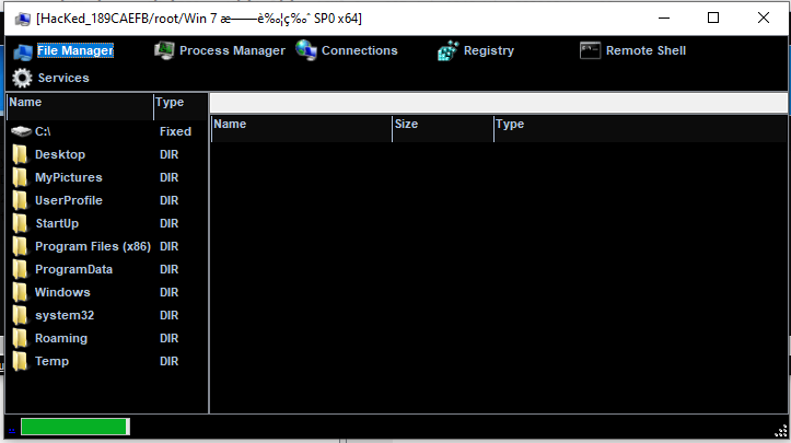 After deploying a payload on the target machine, the compromised machine will be available in the controller application once the connection channel is established. The screenshot of the compromised machine is shown in the ListView (also known as “Thumbnails”):