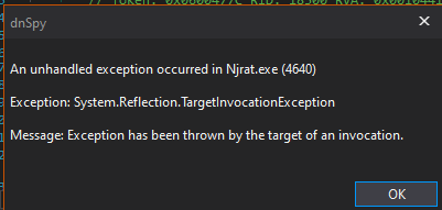 Then, I launched the application using dnSpy (32-bit) and got an exception in the initial stage: