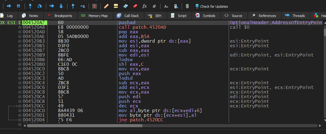 One of the reasons I decided to write this article is that I encountered several issues while analyzing this RAT. I tried to manually unpack the payload, but x32dbg threw exception (EXCEPTION_ACCESS_VIOLATION). Also Scylla was crashed: