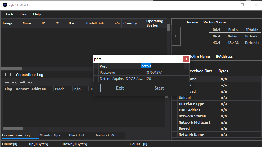 Compared to njRAT v.0.7, the graphical user interface in version 0.9 has been improved.