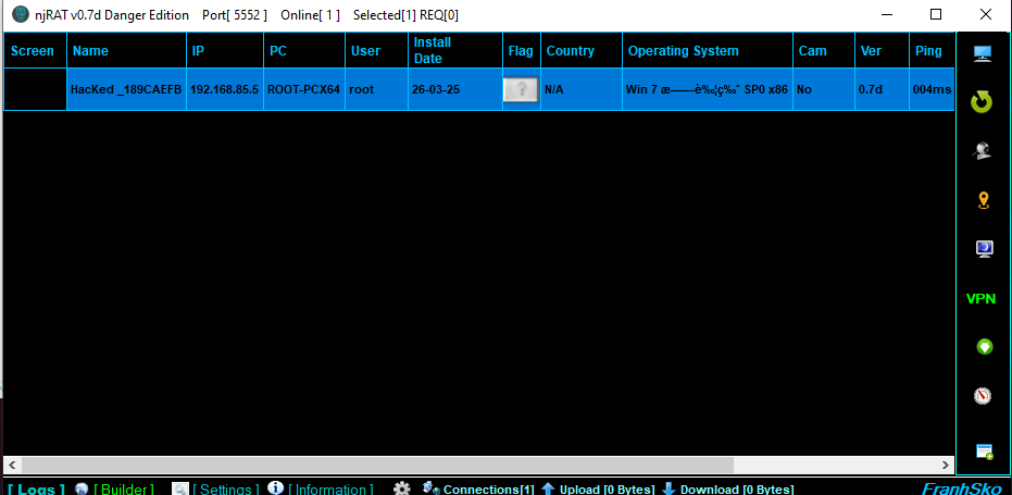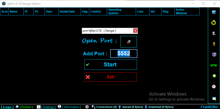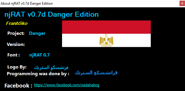 njRAT Danger Edition was initially released in 2017 by FranhSko.