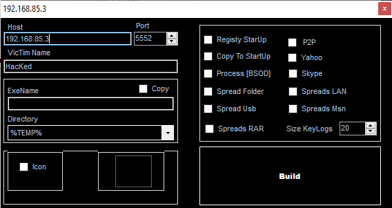 Build the payload using the provided builder. Note that njRAT Danger Edition provides two builder panel. These will be analyzed in the reverse engineering section.
