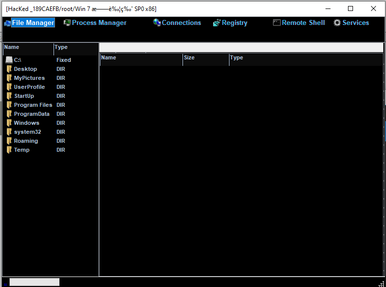 After deploying the payload on the target machine, the compromised machine appears in the controller application once the connection is established.