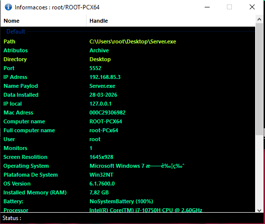 After deploying the payload on the target machine, the compromised machine appears in the controller application once the connection is established.