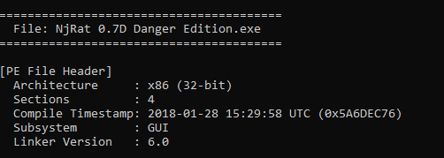 njRAT Danger Edition 2018 is a variant of the njRAT Family and is based on njRAT v0.7.