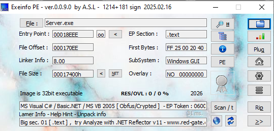 Open the payload using ExeInfo PE and DIE (Detect It Easy):