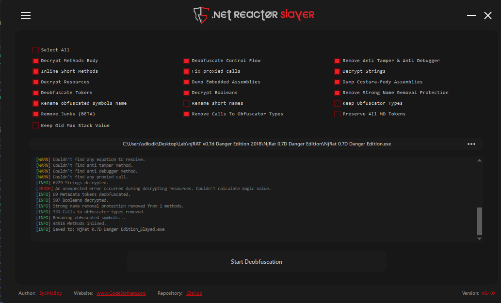 | .NET Reactor Slayer | .NET Reactor de-obfuscator |