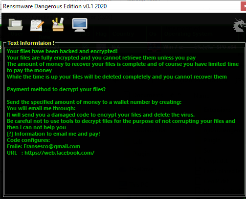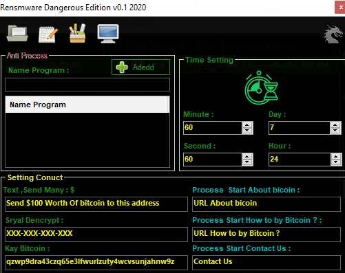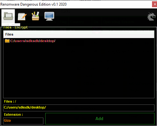 The 2020 version provides Ransomware capabilities. However, it is not user-friendly since attackers are required to specify target files (not directories!) one by one manually: