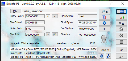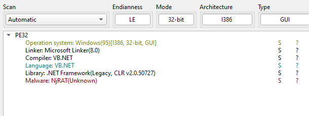 Open the payload using ExeInfo PE and DIE (Detect It Easy):