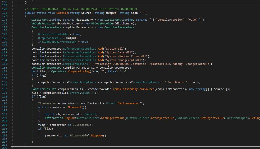 The 2020 version provides a VB.NET compiler for remote code execution: