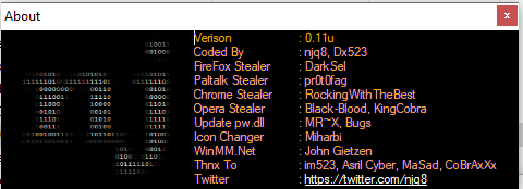 Although these variants introduce minor differences, most of them share the same core architecture and functionality derived from earlier versions such as njRAT v0.7.
