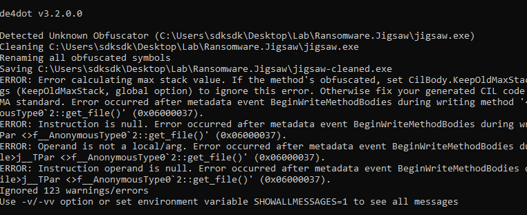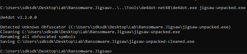 To further improve readability, I then used de4dot, which successfully completed the de-obfuscation: