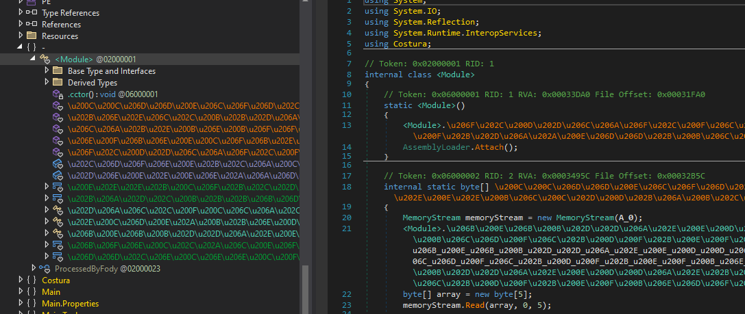 Therefore, I tried to use UnConfuserEx to partially de-obfuscate the malware: