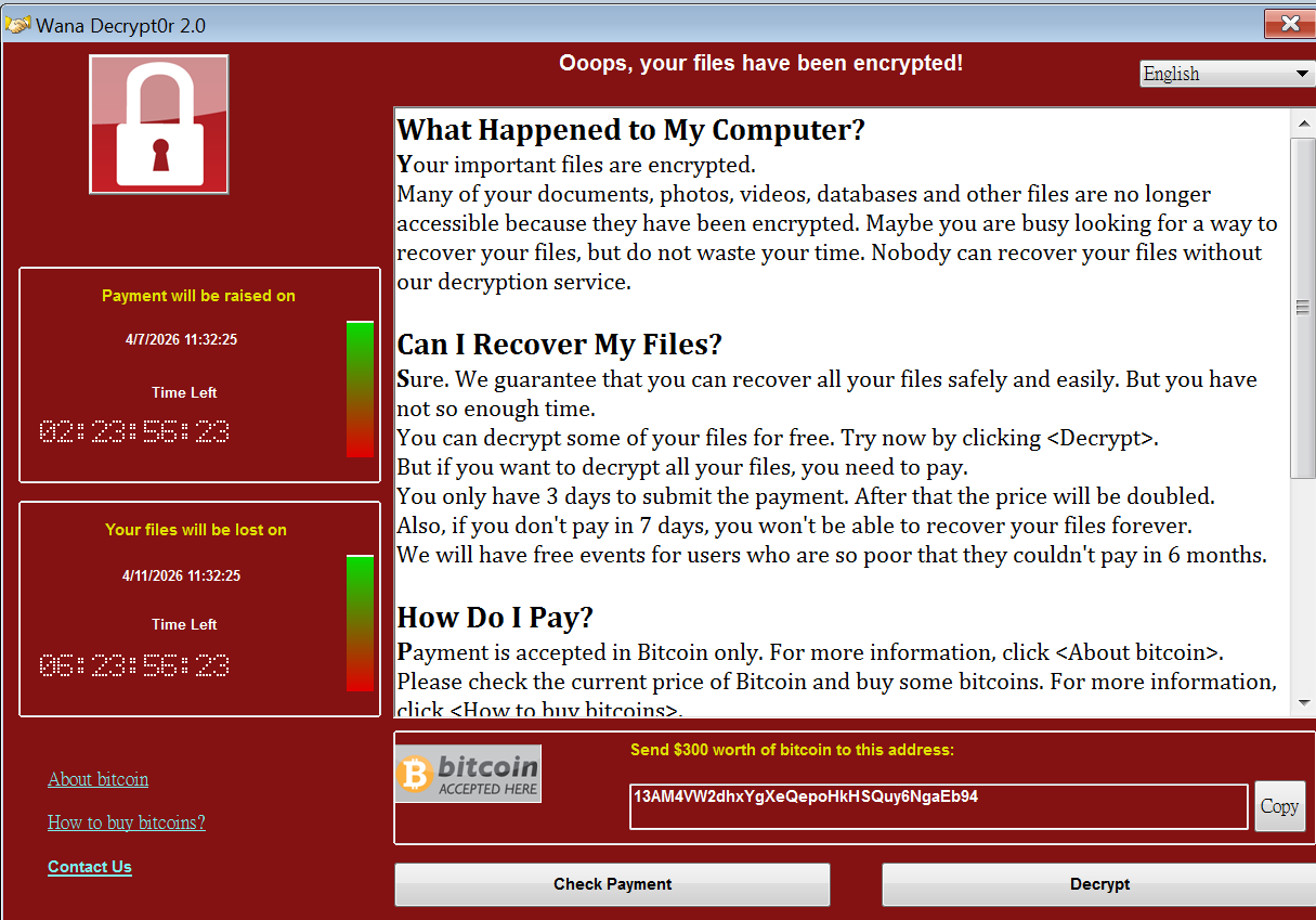 WannaCry is one of the most notable ransomware outbreaks in 2017. The WannaCry ransomware attack was a worldwide cyberattack in May 2017, targeting Windows operating systems via the MS17-010 Eternalblue vulnerability and DoublePulsar (a kernel-level backdoor implant used for post-exploitation) developed by the United States National Security Agency (NSA). 1