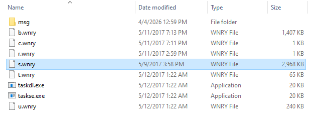 As mentioned in the previous article, WannaCry malware releases different files on the disk: