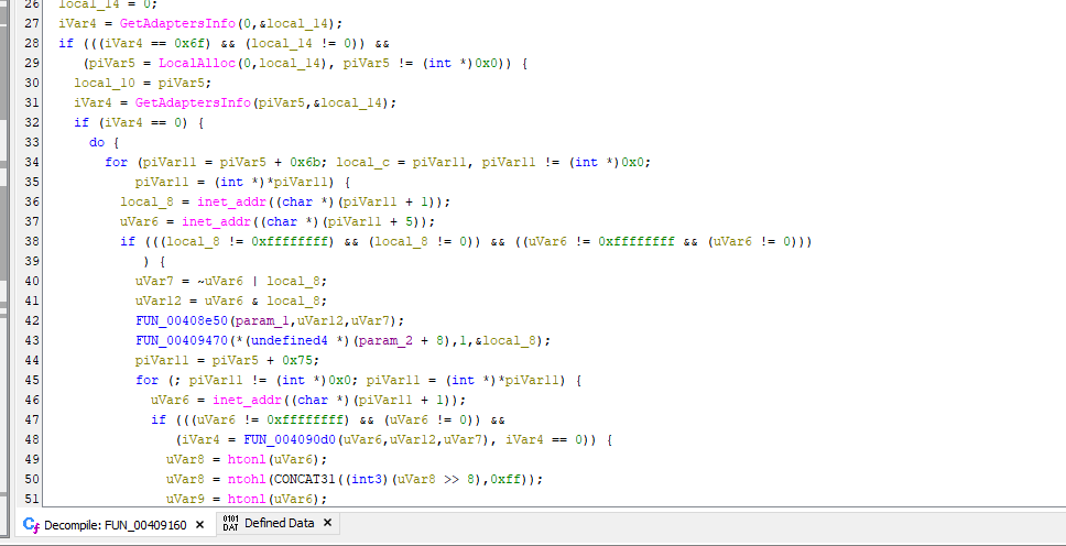 Then, I started to analyze the executable payload. This executable payload is the worming tool. First, it obtains network adapters for spreading: