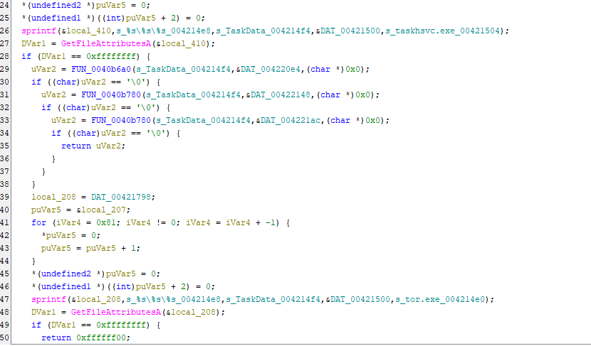 The malware copies TaskData\Tor\tor.exe to TaskData\Tor\tasksche.exe and executes it: