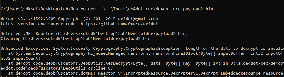 However, again, de4dot can only partially deobfuscate the payload.