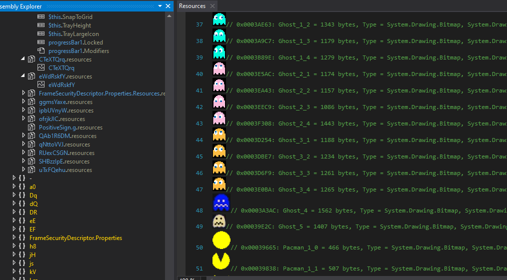 Open the new DLL payload using dnSpy. It can be observed that there are numerous image resources: