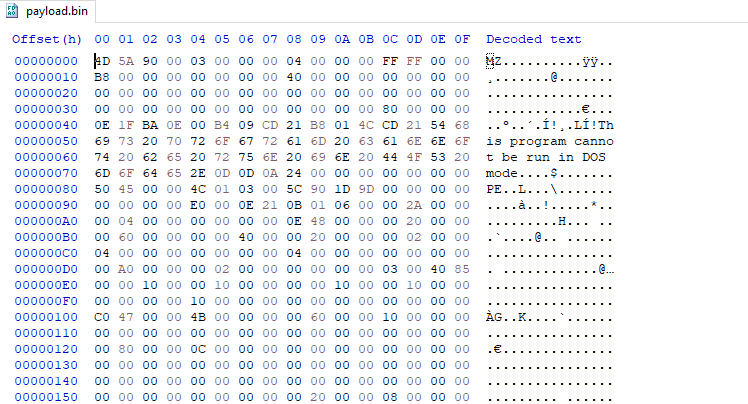 The payload uses Assembly.Load to load another payload from resource after decoding:
