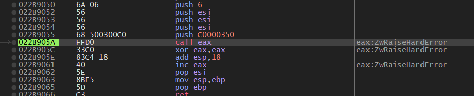 Finally, Petya uses an undocumented Windows API ZwRaiseHardError to induce BSOD once the MBR payload is written to PhysicalDrive0.
