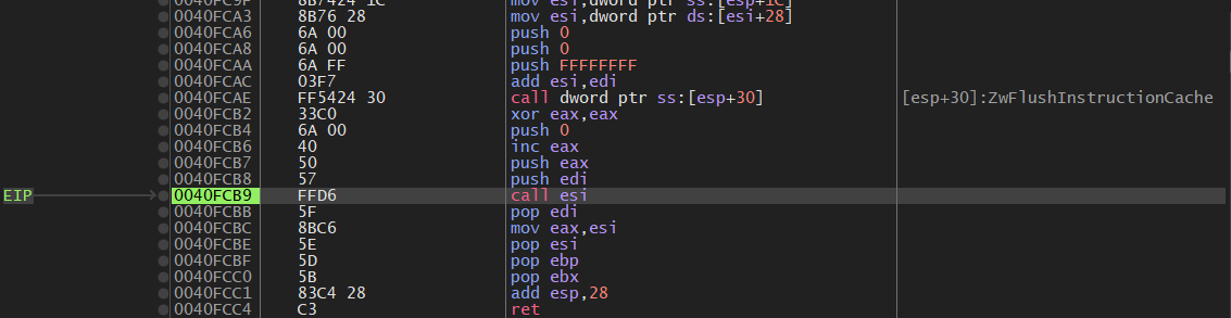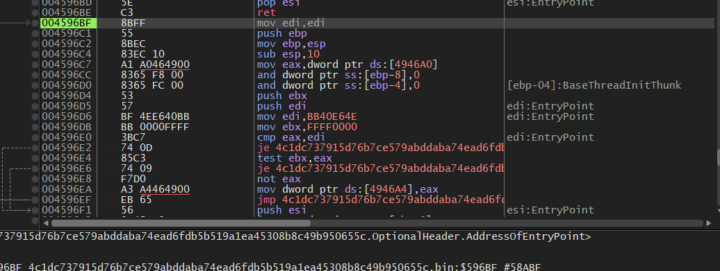 Therefore, I returned to x32dbg and continued the dynamic analysis: