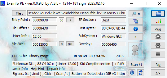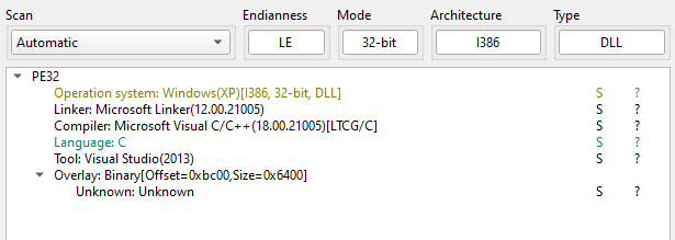ExeInfo PE and DIE confirmed that the dumped payload is a DLL file: